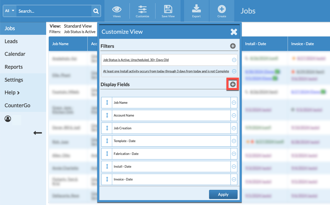 Creating and saving Job Views to keep track of upcoming Activities is very helpful to keep your shop running smoothly. Below you will find the steps to create a Job View showing Installs that are scheduled in the next three days. You can modify the number of days to show more or less, depending on how far out you want to look.